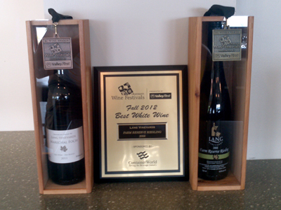 在刚刚举办的加拿大葡萄酒大奖赛中,Lang酒庄获得了白葡萄酒奖,同时酒庄的农场珍藏雷司令干白获得了大赛金奖,2011万里祝福干红获得了大赛铜奖。